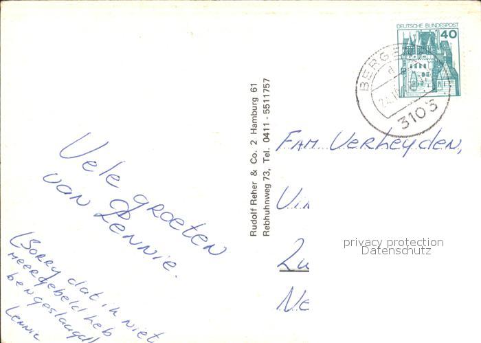 72071508 alte Postkarte Bergen Celle Teilansichten Freibad Kirche Park postalisch gelaufen Erhaltung siehe scans KatCode: 11110003351004