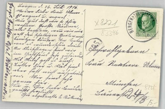 40213551 Bergen Chiemgau Bergen Oberbayern Künstlerkarte x 1916 KatCode 11110009189113