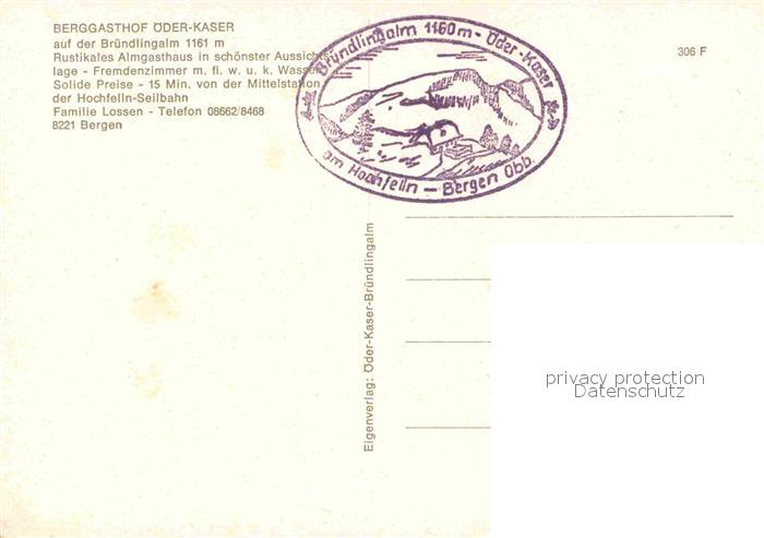 72715679 Bergen Chiemgau Berggasthof oeder Kaser Bruendlingalm Bergbahn postalisch nicht gelaufen Erhaltung siehe scans [FriedD77] KatCode: 11110009189113
