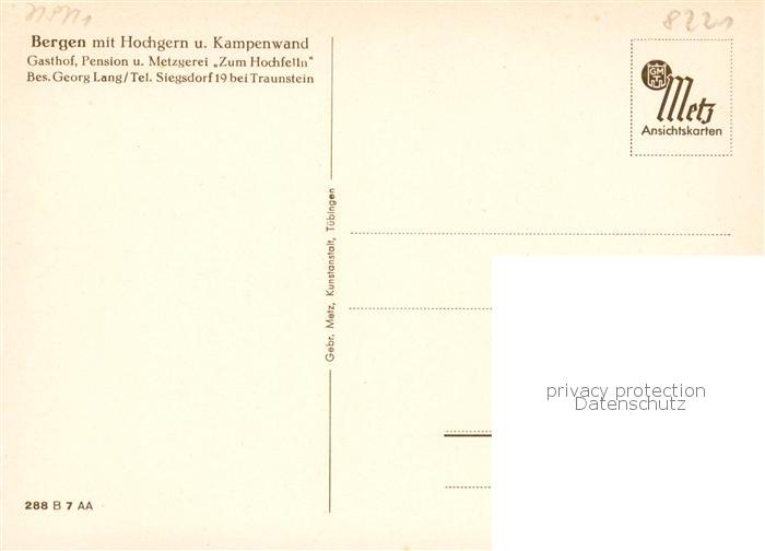 73857877 Bergen Chiemgau Gasthof Pension Zum Hochfelln mit Hochgern und Kampenwand postalisch nicht gelaufen Erhaltung siehe scans [FriedD77] KatCode: 11110009189113