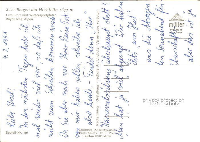 71952356 Bergen Chiemgau Hochfelln Luftseilbahn postalisch nicht gelaufen Erhaltung siehe scans KatCode: 11110009189113
