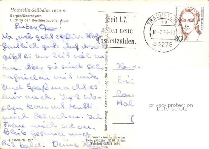 71905754 alte Postkarte Bergen Chiemgau Hochfelln-Seilbahn postalisch gelaufen Erhaltung siehe scans KatCode: 11110009189113
