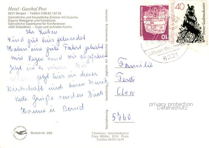 73857446 alte Postkarte Bergen Chiemgau Hotel Gasthof zur Post postalisch gelaufen Erhaltung siehe scans [WerneD78] KatCode: 11110009189113