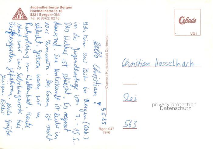 73124366 alte Postkarte Bergen Chiemgau Jugendherberge postalisch gelaufen Erhaltung siehe scans [KathaD81] KatCode: 11110009189113