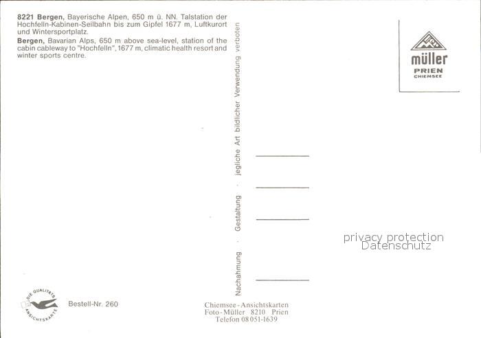 72463787 Bergen Chiemgau Seilbahn Chiemsee Tracht Bernhaupten postalisch nicht gelaufen Erhaltung siehe scans KatCode: 11110009189113