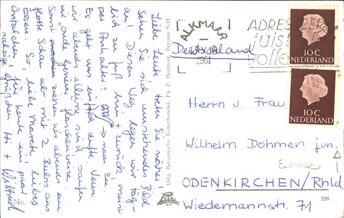 old postcard Bergen Niederland postalisch gelaufen
