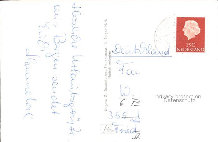 old postcard Bergen Nordholland Hertenkamp Hoflaan Karkelaan Sparrenlaan postalisch gelaufen Erhaltung siehe scans