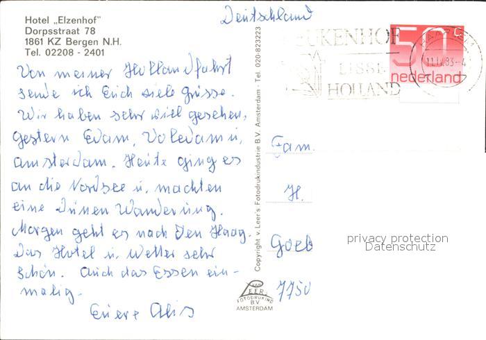 old postcard Bergen Nordholland Hotel Elzenhof postalisch gelaufen Erhaltung siehe scans