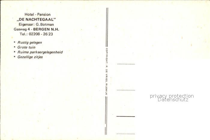 Bergen Nordholland Hotel Pension De Nachtegaal postalisch nicht gelaufen Erhaltung siehe scans