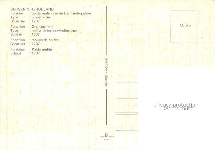 Bergen Nordholland Windmuehle postalisch nicht gelaufen Erhaltung siehe scans