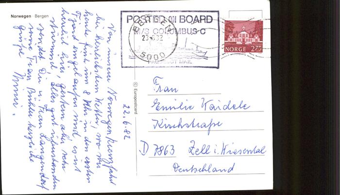 old postcard Bergen Norwegen postalisch gelaufen