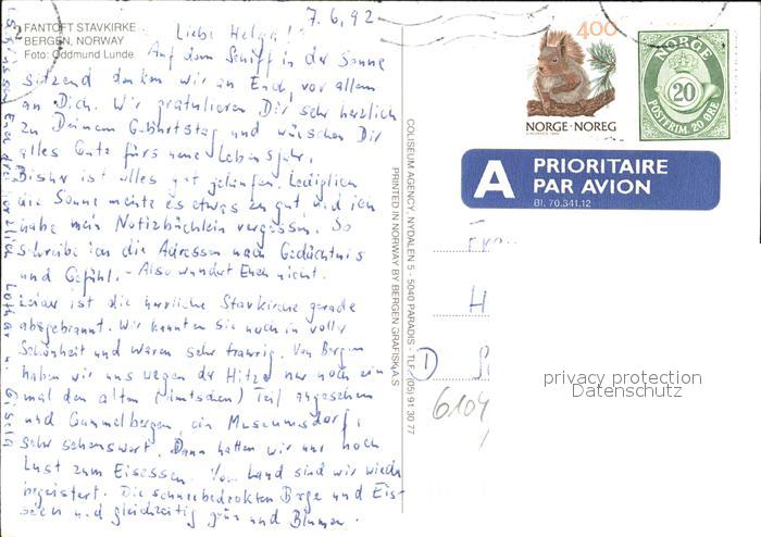 old postcard Bergen Norwegen Fantoft Stavkirke postalisch gelaufen Erhaltung siehe scans [WerneD78]