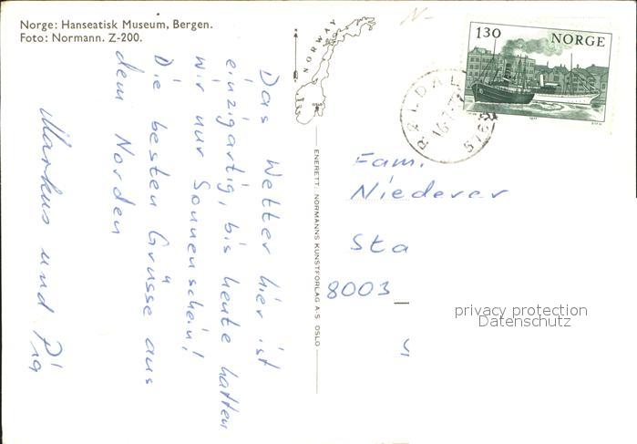 old postcard Bergen Norwegen Hanseatisk Museum postalisch gelaufen Erhaltung siehe scans