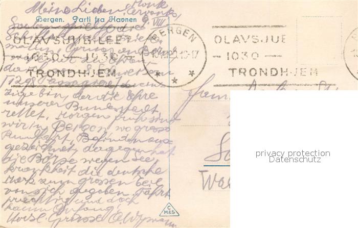 old postcard Bergen Norwegen Havnen postalisch gelaufen Erhaltung siehe scans [NatalD47]