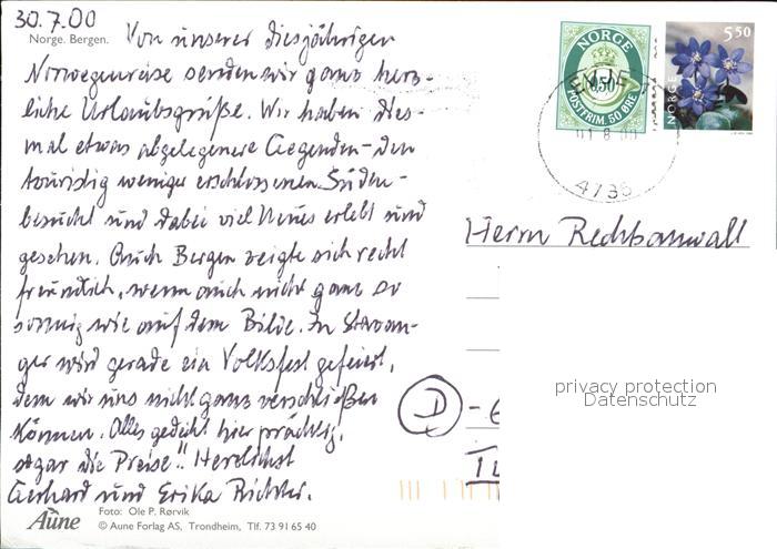old postcard Bergen Norwegen Luftaufnahme postalisch gelaufen Erhaltung siehe scans
