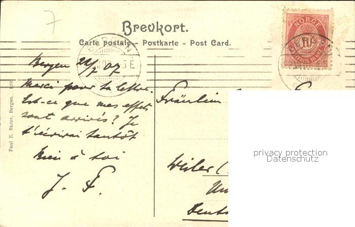 old postcard Bergen Norwegen Panorama Hafen postalisch gelaufen