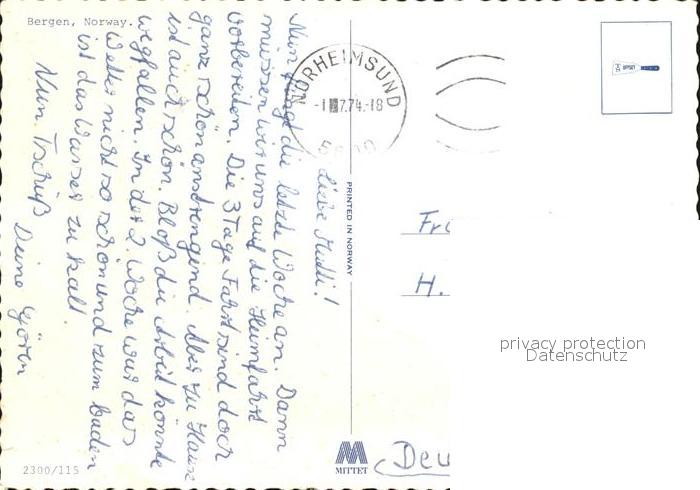 old postcard Bergen Norwegen Seilbahn Fliegeraufnahmen postalisch gelaufen Erhaltung siehe scans [WerneD78]