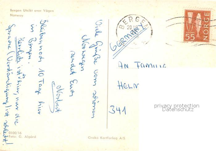 old postcard Bergen Norwegen Utsikt over Vagen postalisch gelaufen Erhaltung siehe scans [WerneD78]