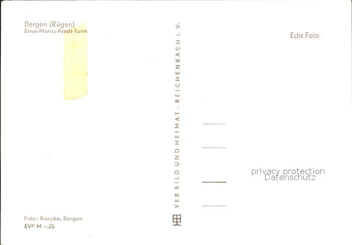 72350928 Bergen Ruegen Ernst Moritz Arndt Turm postalisch nicht gelaufen Erhaltung siehe scans KatCode: 11110013061004