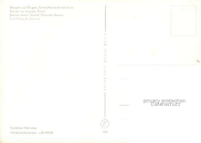 73125104 Bergen Ruegen Ernst-Moritz-Arndt-Turm postalisch nicht gelaufen Erhaltung siehe scans [PaolaD17] KatCode: 11110013061004