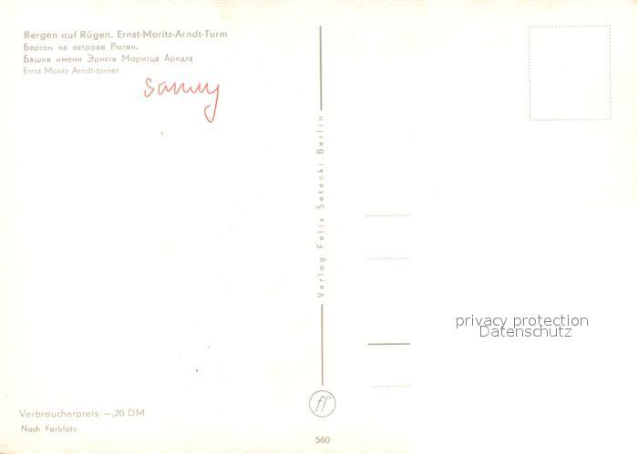 73070539 Bergen Ruegen Ernst Moritz Arndt Turm postalisch nicht gelaufen Erhaltung siehe scans [FriedD77] KatCode: 11110013061004
