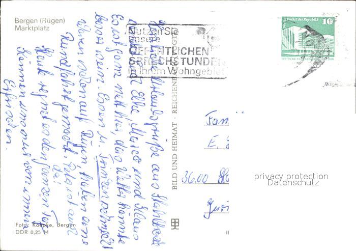 72017712 alte Postkarte Bergen Ruegen Marktplatz postalisch gelaufen Erhaltung siehe scans KatCode: 11110013061004