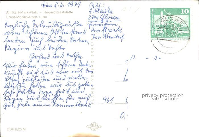 72432248 alte Postkarte Bergen Ruegen Restaurant Rugard Ernst-Moritz-Arndt-Turm postalisch gelaufen Erhaltung siehe scans KatCode: 11110013061004