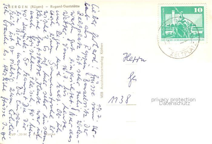 73723958 alte Postkarte Bergen Ruegen Rugard Gaststaette postalisch gelaufen Erhaltung siehe scans [WerneD78] KatCode: 11110013061004