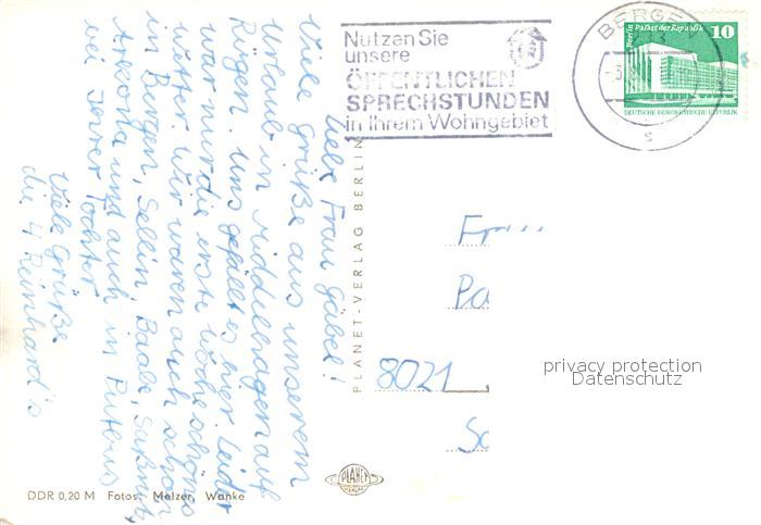 72984091 alte Postkarte Bergen Ruegen Turm Rugard Gaststaette Terrasse postalisch gelaufen Erhaltung siehe scans [WerneD78] KatCode: 11110013061004
