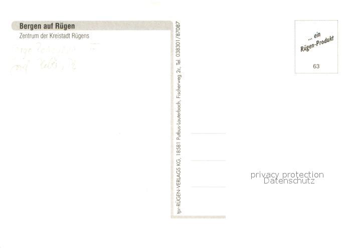 73727330 Bergen Ruegen Zentrum der Kreisstadt Fliegeraufnahme postalisch nicht gelaufen Erhaltung siehe scans [WerneD78] KatCode: 11110013061004