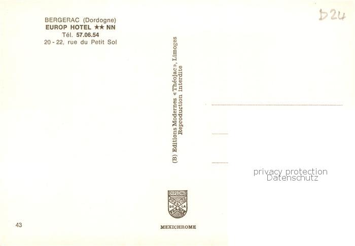13814912 Bergerac Europ Hotel postalisch nicht gelaufen Erhaltung siehe scans [WerneD78] Wern Katcode 11170024124037