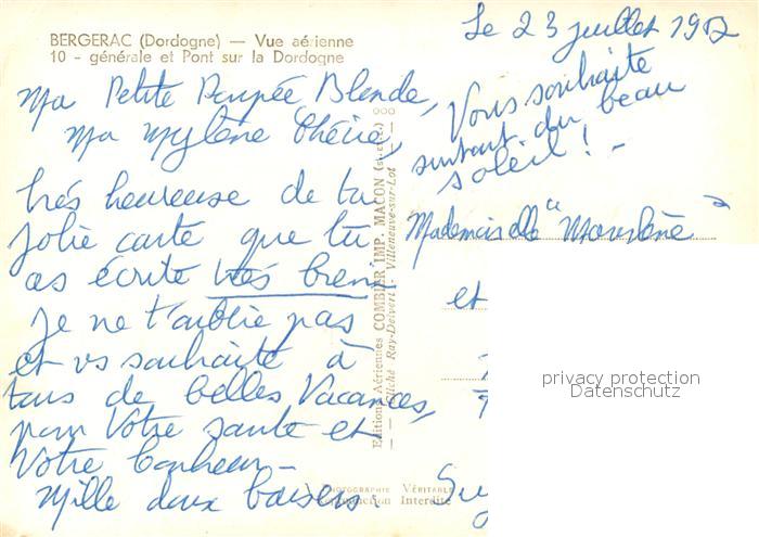 13580923 carte postale Bergerac Vue generale aerienne et Pont sur la Dordogne postalisch gelaufen Erhaltung siehe scans [WerneD78] KatCode: 11170024124037