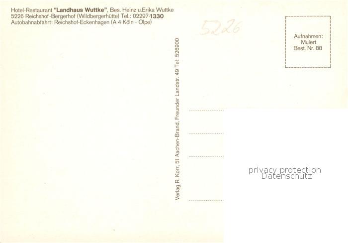 73867386 Bergerhof Reichshof Hotel Restaurant Landhaus Wuttke Landschaftspanorama postalisch nicht gelaufen Erhaltung siehe scans [FriedD77] Frie Katcode 11110005374040