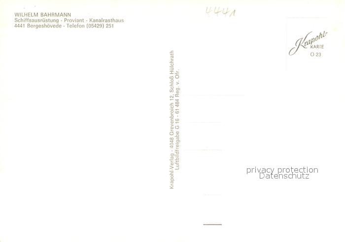 73666458 Bergeshoevede Fliegeraufnahme mit Bahrmann Schiffsausruestung Proviant Kanalrasthaus postalisch nicht gelaufen Erhaltung siehe scans [WerneD78] KatCode: 11110005566016