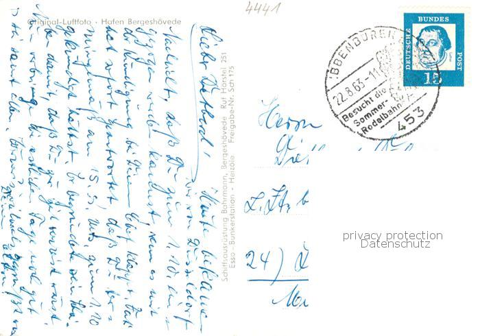 73853466 alte Postkarte Bergeshoevede Hafen Original-Luftfoto postalisch gelaufen Fliegeraufnahme Erhaltung siehe scans [FriedD77] KatCode: 11110005566016