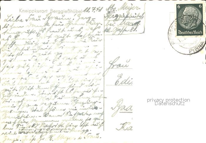 72046314 alte Postkarte Berggiesshuebel postalisch gelaufen Erhaltung siehe scans KatCode: 11110014287015