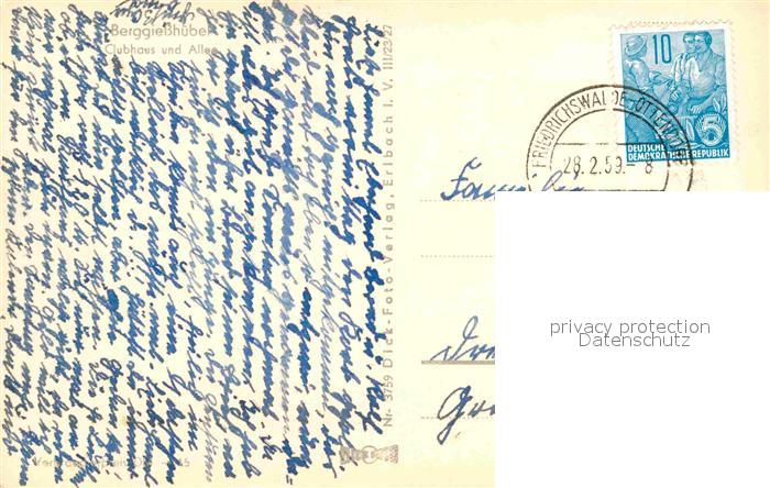 72642952 alte Postkarte Berggiesshuebel Clubhaus und Allee Bachlauf postalisch gelaufen Erhaltung siehe scans [FriedD77] KatCode: 11110014287015