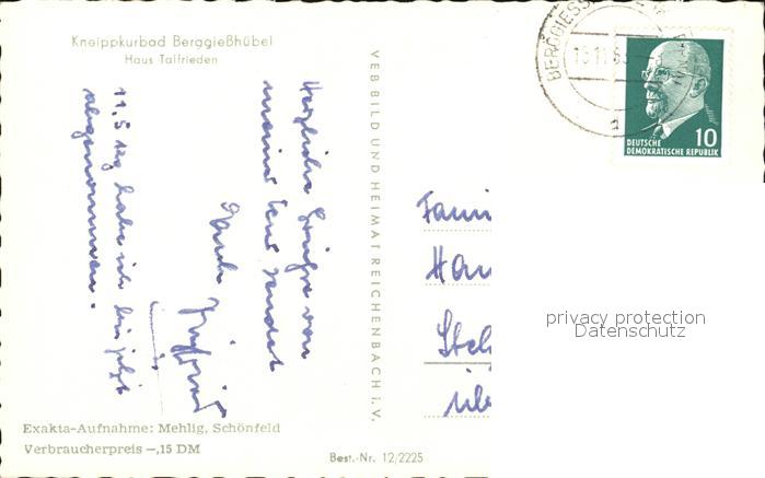 72471925 alte Postkarte Berggiesshuebel Haus Talfrieden Kneippkurbad postalisch gelaufen Erhaltung siehe scans KatCode: 11110014287015