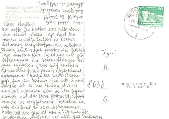 73272637 alte Postkarte Berggiesshuebel Kneippkurbad Haus Talfrieden Kurhaus Blumenanlagen postalisch gelaufen Erhaltung siehe scans [KathaD81] KatCode: 11110014287015