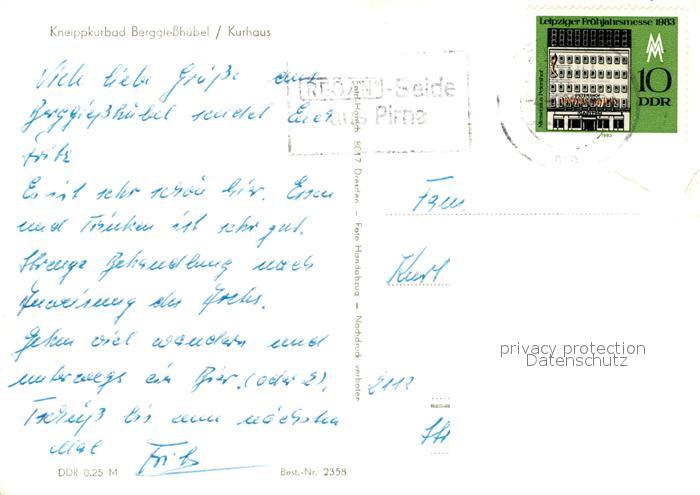 73094186 alte Postkarte Berggiesshuebel Kurhaus postalisch gelaufen Erhaltung siehe scans [LiesaD40] KatCode: 11110014287015