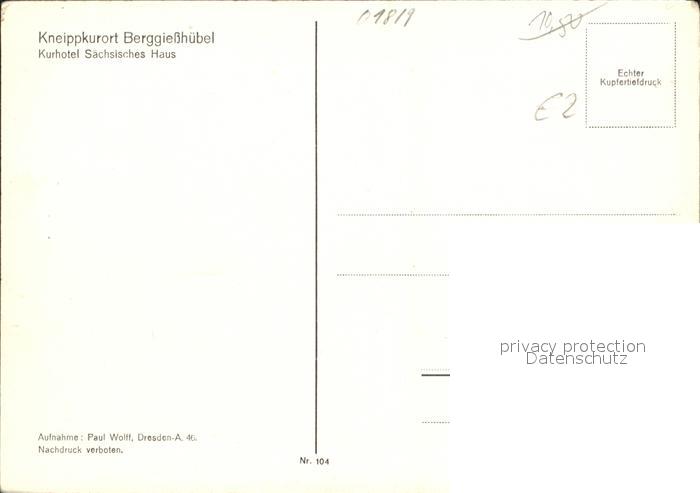 Berggiesshuebel Kurhaus Saechsisches Haus Kneippkurort Kupfertiefdruck