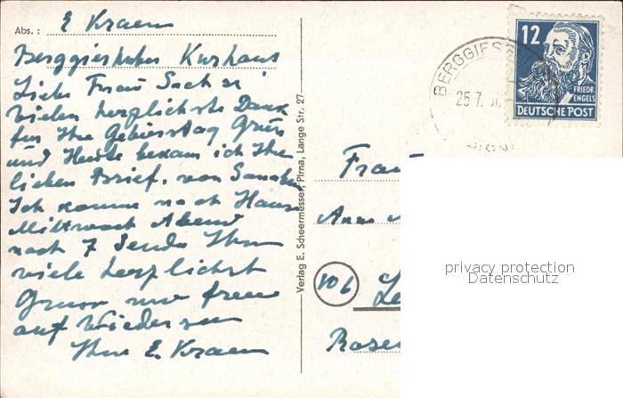 32040739 alte Postkarte Berggiesshuebel Kurhaus Talfrieden postalisch gelaufen Erhaltung siehe scans KatCode: 11110014287015
