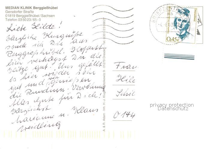 73704543 alte Postkarte Berggiesshuebel Median Klinik postalisch gelaufen Fliegeraufnahme Erhaltung siehe scans [FriedD77] KatCode: 11110014287015