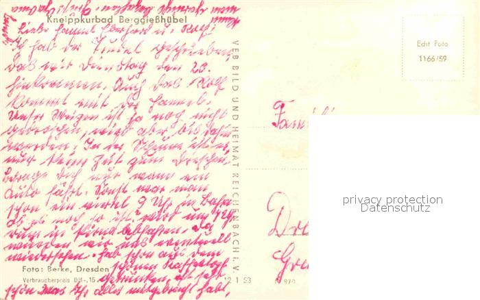 72642945 alte Postkarte Berggiesshuebel Ortsansicht mit Kirche Kneippkurbad postalisch gelaufen Erhaltung siehe scans [FriedD77] KatCode: 11110014287015