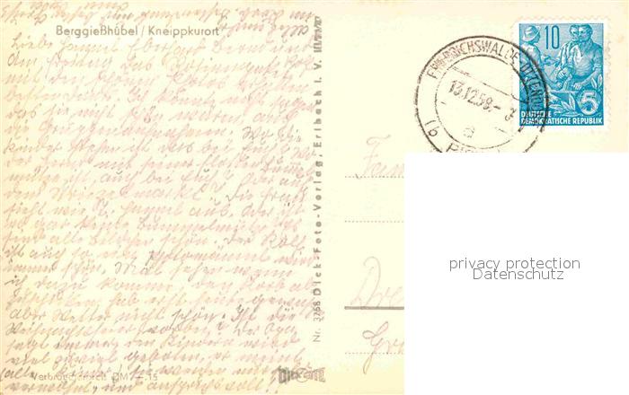 72642956 alte Postkarte Berggiesshuebel Ortsansicht mit Kirche Kneippkurort postalisch gelaufen Erhaltung siehe scans [FriedD77] KatCode: 11110014287015
