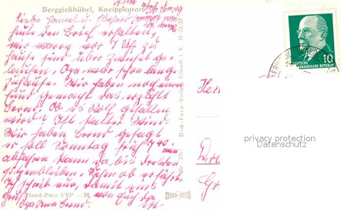 72642948 alte Postkarte Berggiesshuebel Panorama Kneippkurort postalisch gelaufen Erhaltung siehe scans [FriedD77] KatCode: 11110014287015