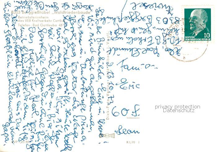 73801850 alte Postkarte Berggiesshuebel Waldfriedenbaude postalisch gelaufen Erhaltung siehe scans [WerneD78] KatCode: 11110014287015