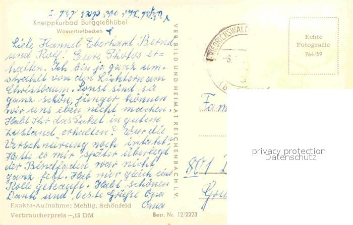 72642951 alte Postkarte Berggiesshuebel Wassertretbecken Kneippkurbad postalisch gelaufen Erhaltung siehe scans [FriedD77] KatCode: 11110014287015