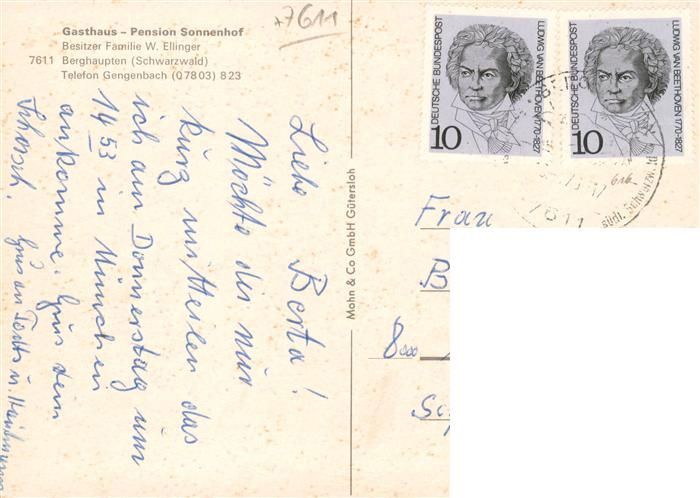 73905767 alte Postkarte Berghaupten Gasthaus Pension Sonnenhof postalisch gelaufen Erhaltung siehe scans [FriedD77] KatCode: 11110008317009