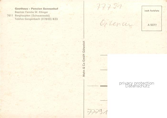 73801908 Berghaupten Gasthaus Pension Sonnenhof postalisch nicht gelaufen Erhaltung siehe scans [WerneD78] KatCode: 11110008317009